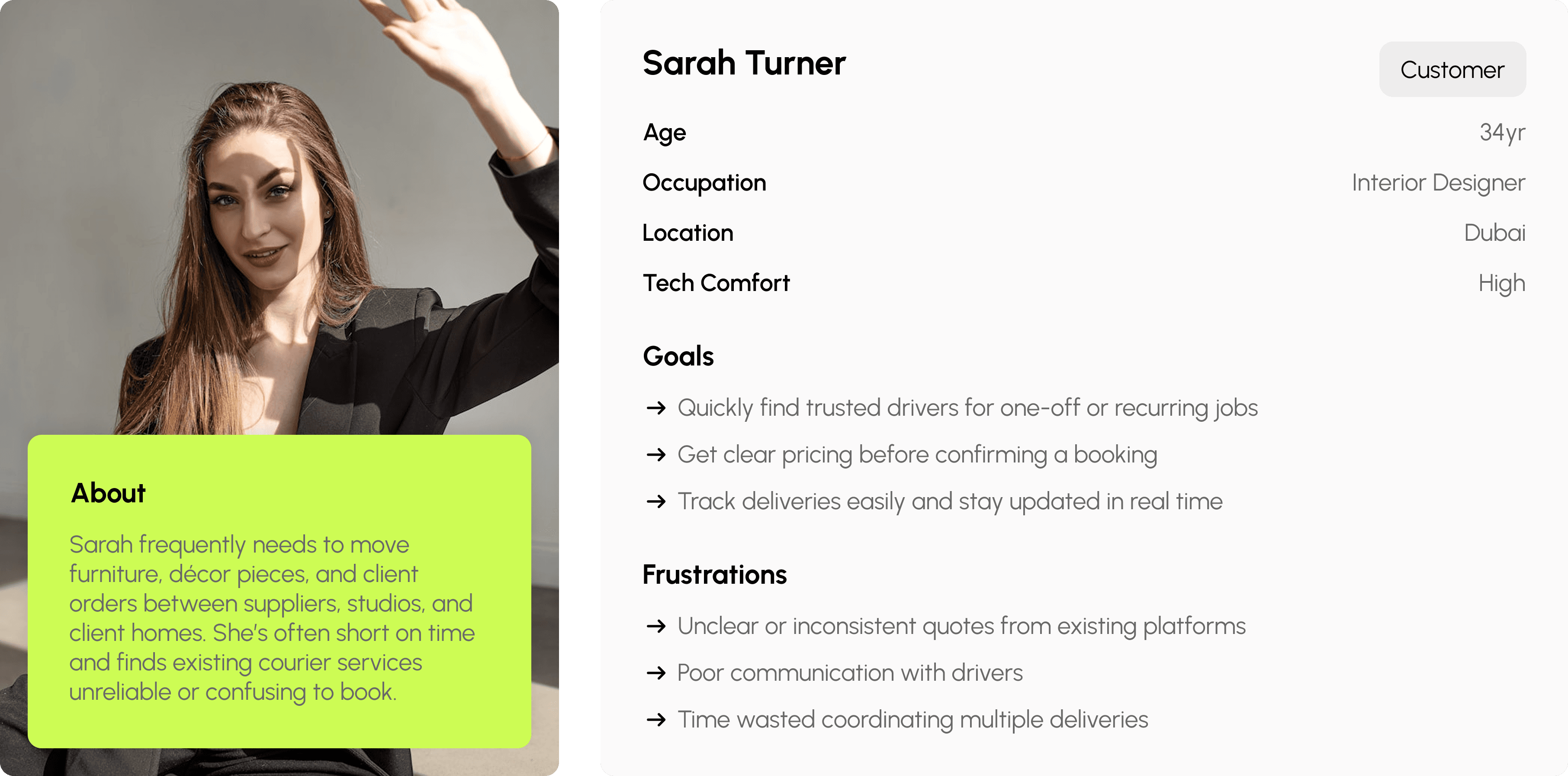 Designing for two distinct user groups — drivers and customers — came with its challenges, but it also made the project incredibly rewarding. We spent a lot of time stepping into each user’s shoes, mapping out their journeys, and uncovering pain points they might encounter along the way. The client’s support was invaluable; they helped us connect with local drivers so we could gather authentic insights from real experiences.
